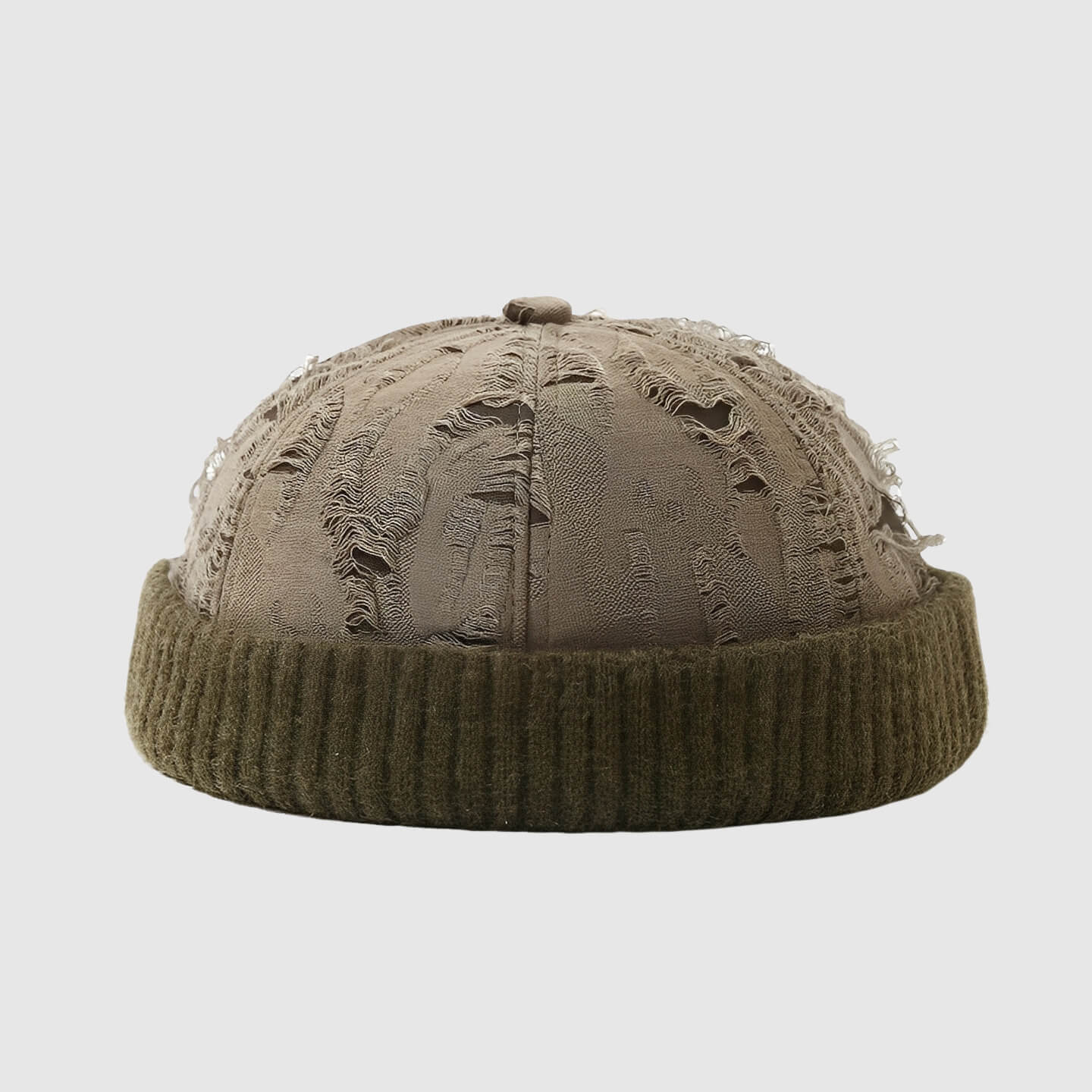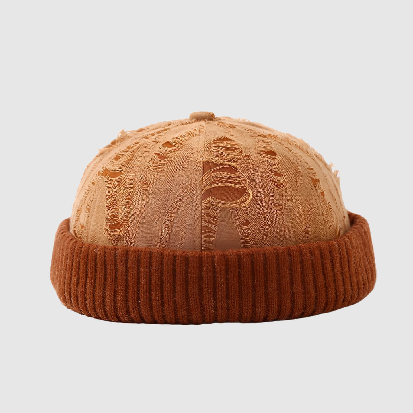 Sa forme brimless avec bord retroussé donne immédiatement une touche moderne et légèrement rétro à la tenue, sans être trop volumineuse.