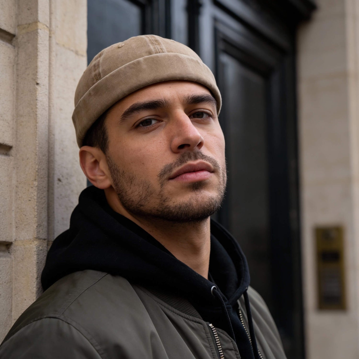 Un bonnet docker au style très inspiré des looks japonais et Y2K, idéal pour créer une silhouette forte avec un accessoire simple. Monochrome et brimless, il devient rapidement une pièce signature de ta garde‑robe.