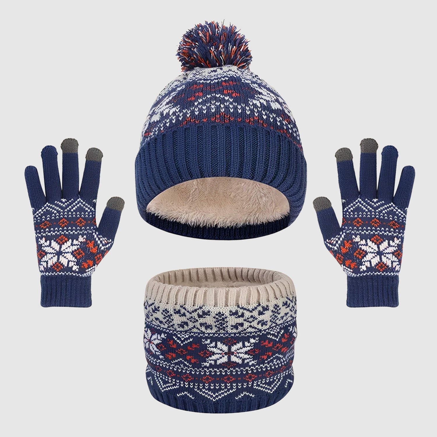 Ensemble bonnet, cache-cou et gants – hiver chaud pour les 3‑12 ans