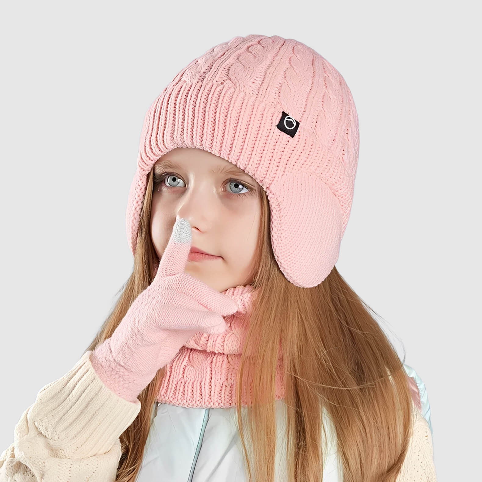 Un ensemble 3 pièces composé d’un bonnet, d’une écharpe et de gants assortis, idéal pour garder les enfants bien au chaud lors des journées d’hiver en extérieur. Le tricot doublé de matière chaude protège efficacement la tête, le cou et les mains.