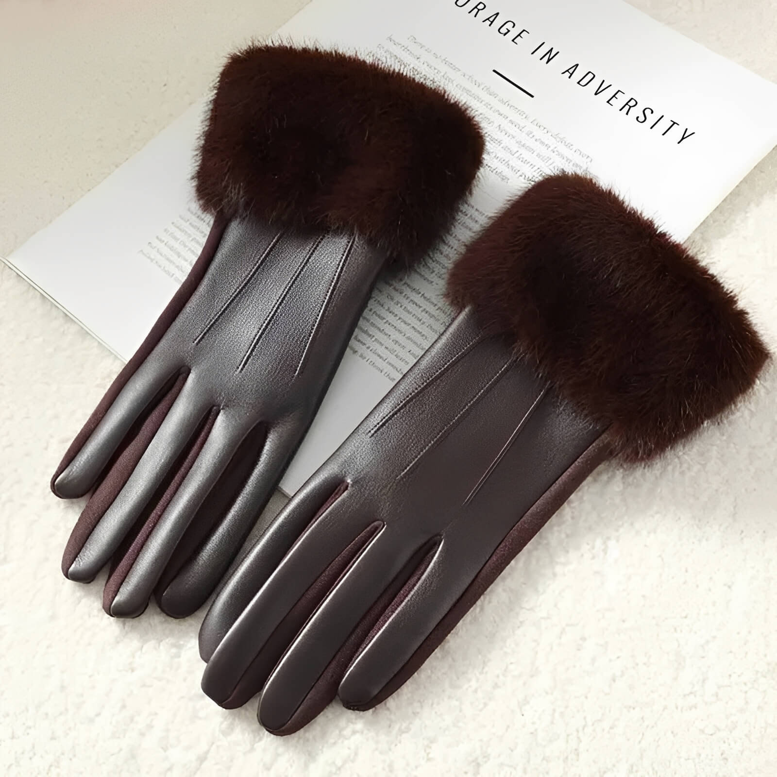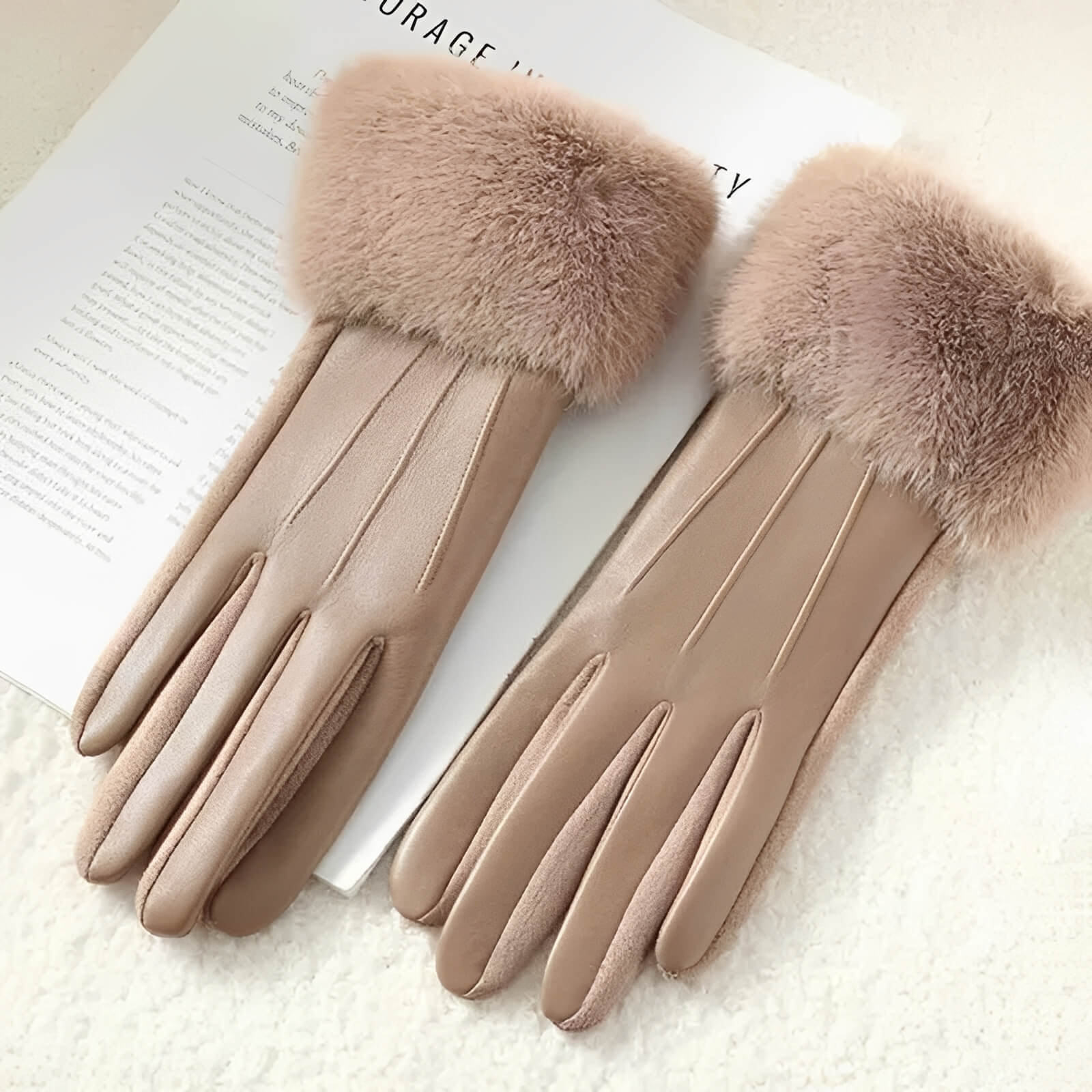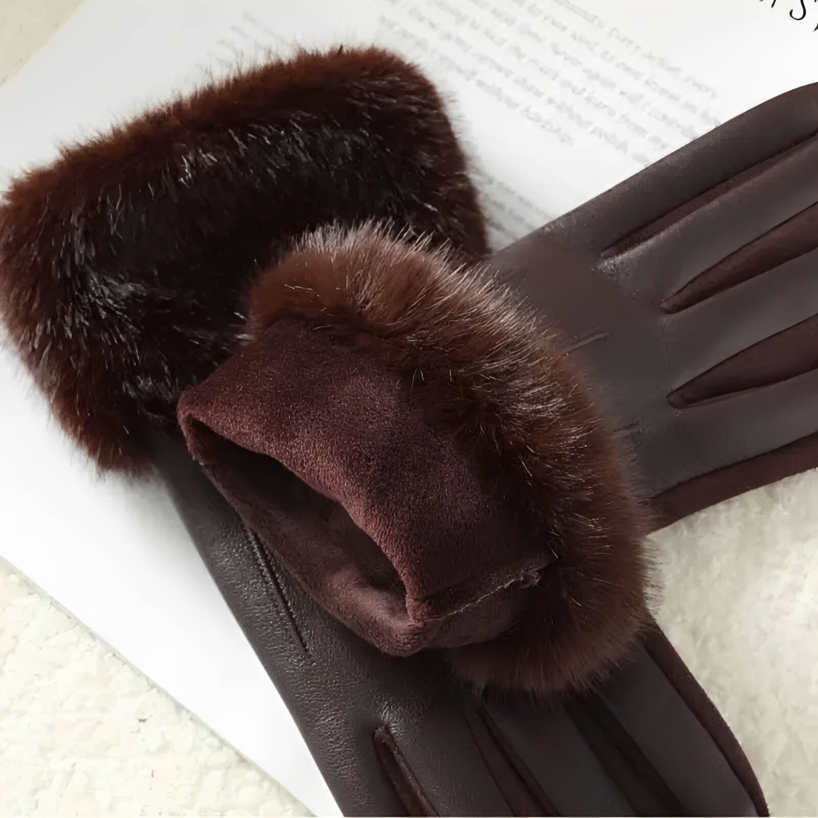 Gants femme hiver luxe en similicuir avec fausse fourrure