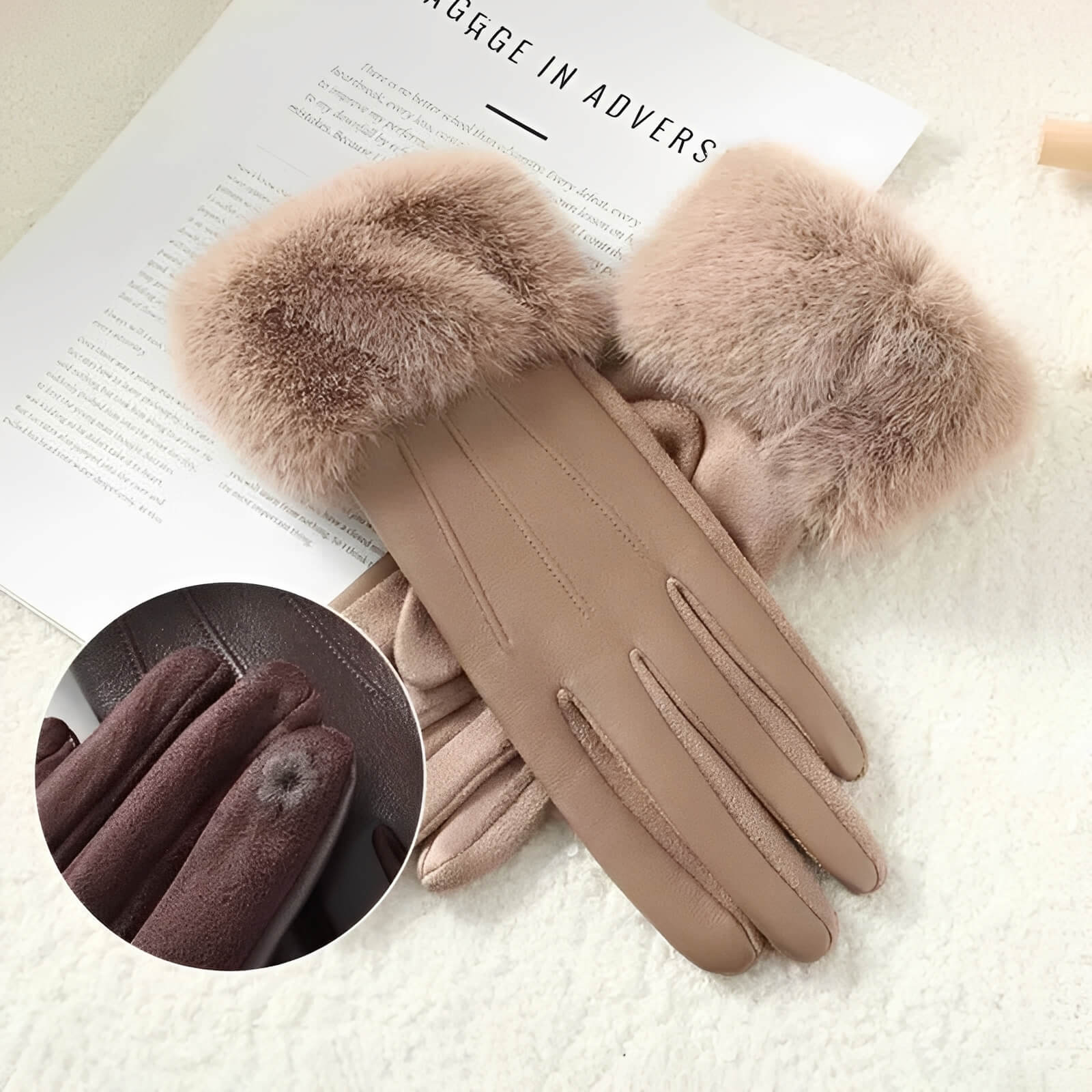 • Particularités : Compatible écran tactile, poignet bordé de fausse fourrure